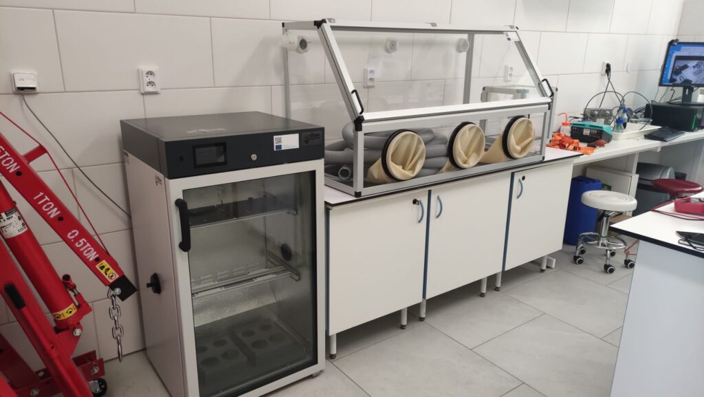 V rámci spolupráce s Univerzitou Pavla Jozefa Šafárika (UPJS) prebiehala syntéza a testovanie nových vo vode rozpustných organických elektrolytov.