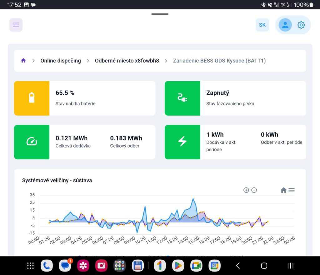 Celý systém je pripojený k programovateľnému obojsmernému napájaciemu zdroju s rozsahom napätia 80 V a prúdovým rozsahom 340 A. Naším hlavným cieľom bolo vyhodnotiť výkonnosť batérie pri rôznych podmienkach nabíjania a vybíjania. Počiatočné cyklovanie pri výkone 3 kW a 5 kW odhalilo energetickú účinnosť batérie 88 % a 80 %.